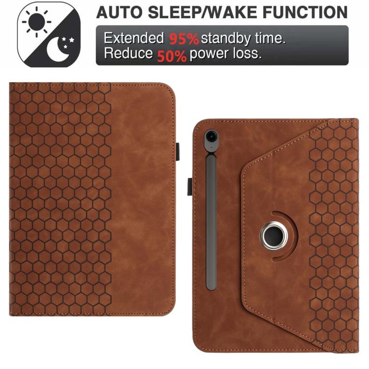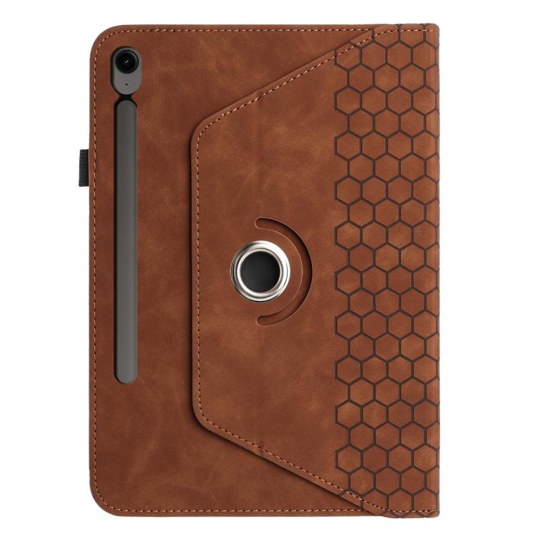 For Samsung Galaxy Tab S9 / Tab S9 FE Rotatable Honeycomb Embossed Smart Leather Tablet Case(Brown)