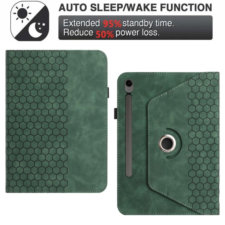 For Samsung Galaxy Tab S9 / Tab S9 FE Rotatable Honeycomb Embossed Smart Leather Tablet Case(Green)