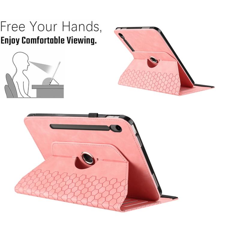 For Samsung Galaxy Tab S9+ / Tab S9 FE+ Rotatable Honeycomb Embossed Smart Leather Tablet Case(Pink)