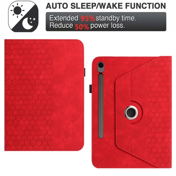 For Samsung Galaxy Tab S9 / Tab S9 FE Rotatable Honeycomb Embossed Smart Leather Tablet Case(Red)