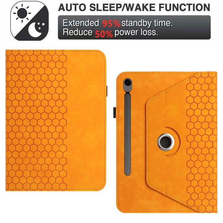 For Samsung Galaxy Tab S9 / Tab S9 FE Rotatable Honeycomb Embossed Smart Leather Tablet Case(Yellow)