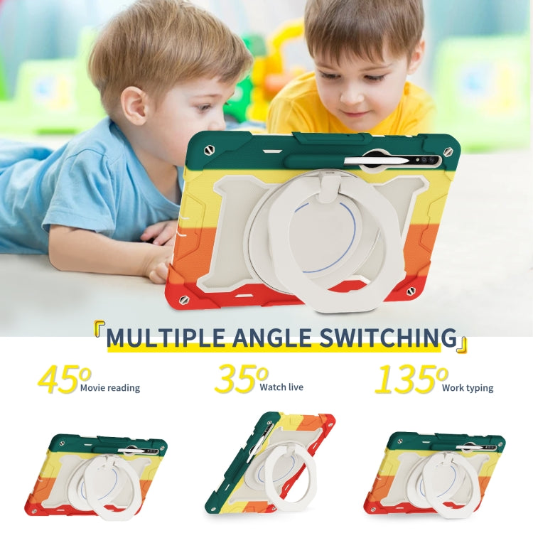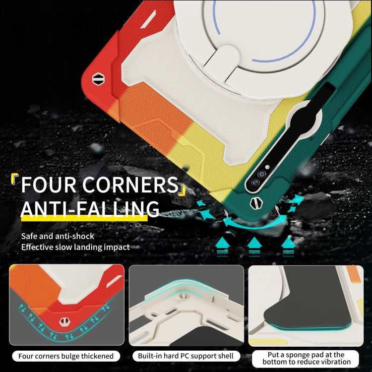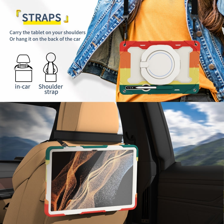 For Samsung Galaxy Tab S9 Ultra Armor Portable Rotating Ring Holder Silicone Tablet Case(Colorful Red)