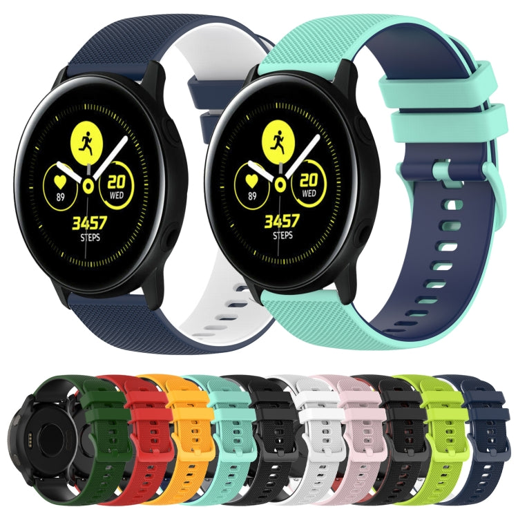 For Samsung Galaxy Watch Active 40mm 20mm Checkered Two-Color Silicone Watch Band(Teal+Blue)