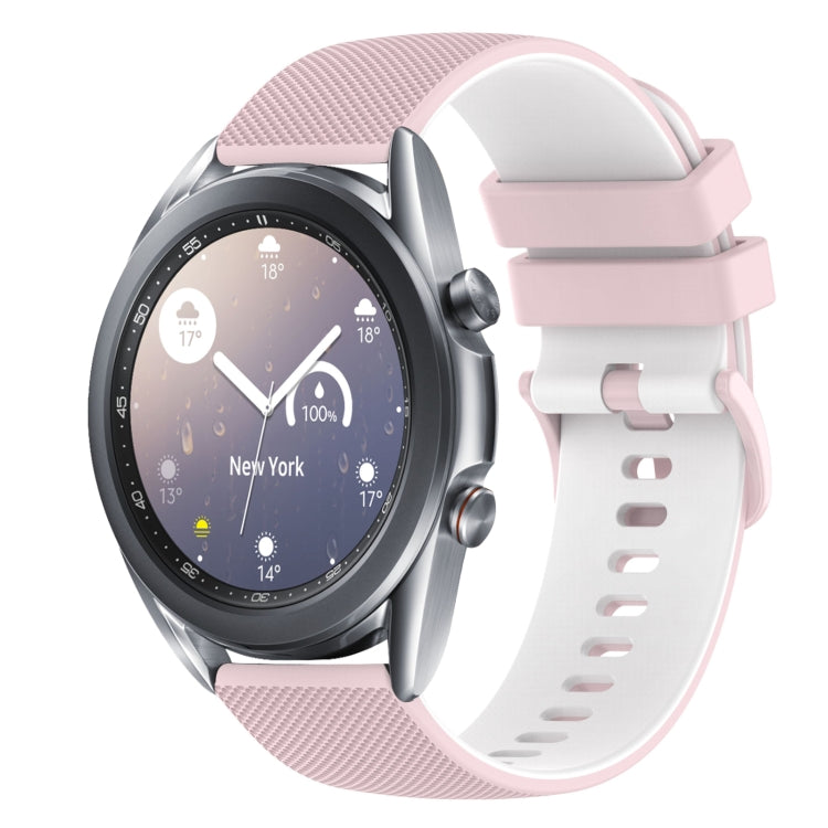For Samsung Galaxy Watch3 41mm 20mm Checkered Two-Color Silicone Watch Band(Pink+White)