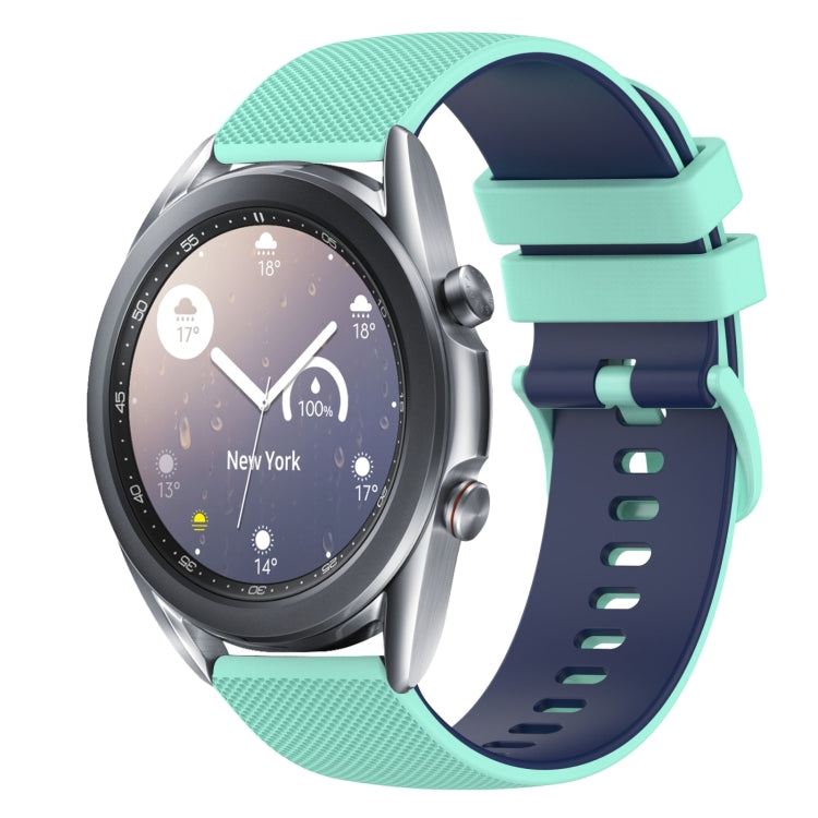 For Samsung Galaxy Watch3 41mm 20mm Checkered Two-Color Silicone Watch Band(Teal+Blue)
