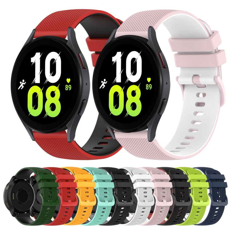 For Samsung Galaxy Watch4 40mm 20mm Checkered Two-Color Silicone Watch Band(Dark Blue+White)