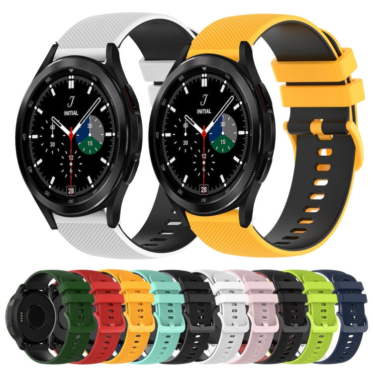 For Samsung Galaxy Watch4 Classic 42mm 20mm Checkered Two-Color Silicone Watch Band(Lime Green+Black)