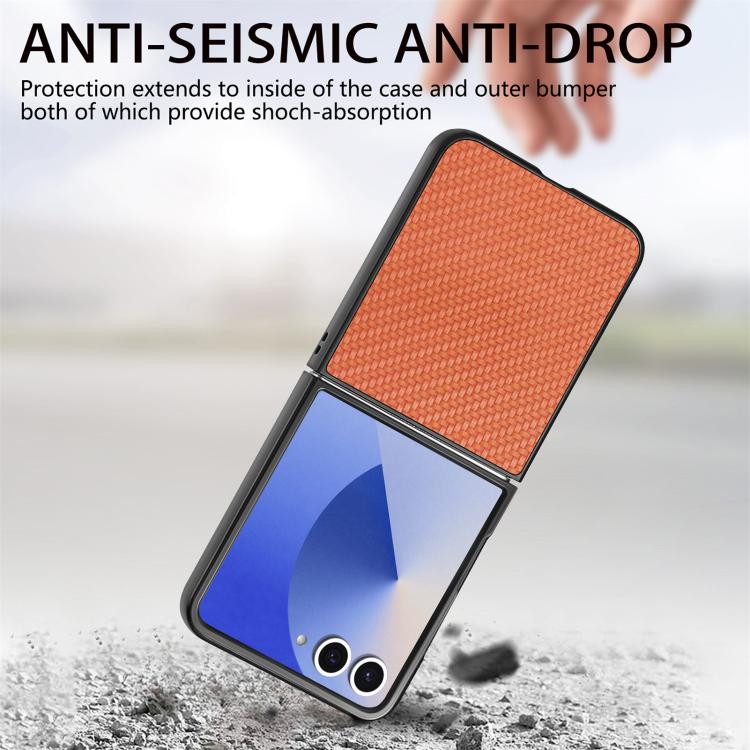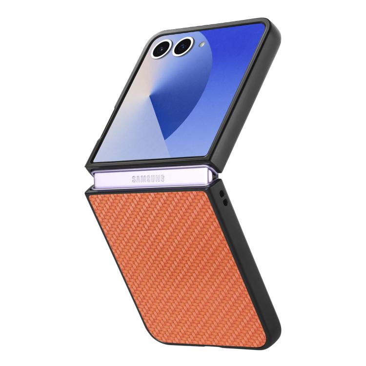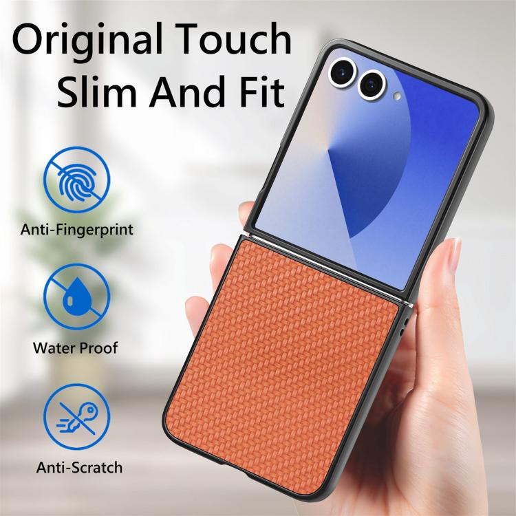 For Samsung Galaxy Z Flip 7 5G Carbon Fiber Texture Leather Back Phone Case(Brown)
