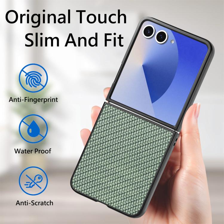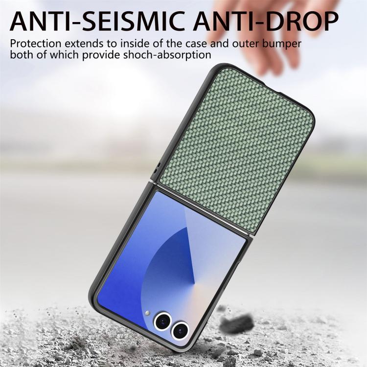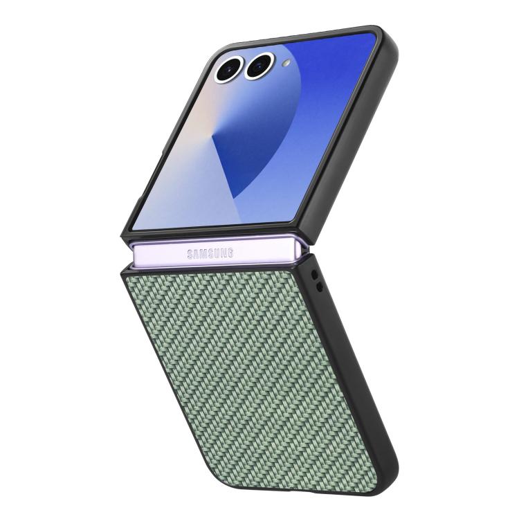 For Samsung Galaxy Z Flip 7 5G Carbon Fiber Texture Leather Back Phone Case(Green)