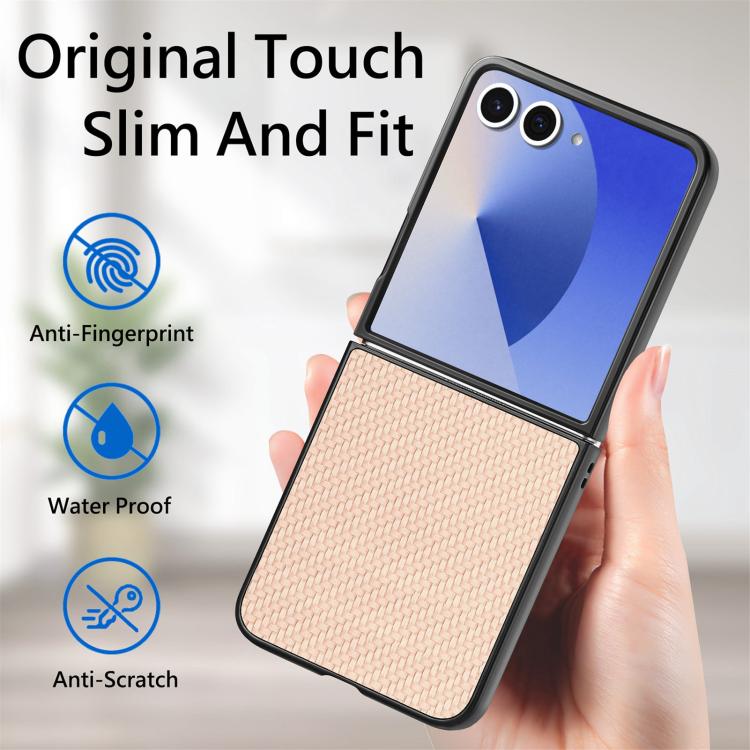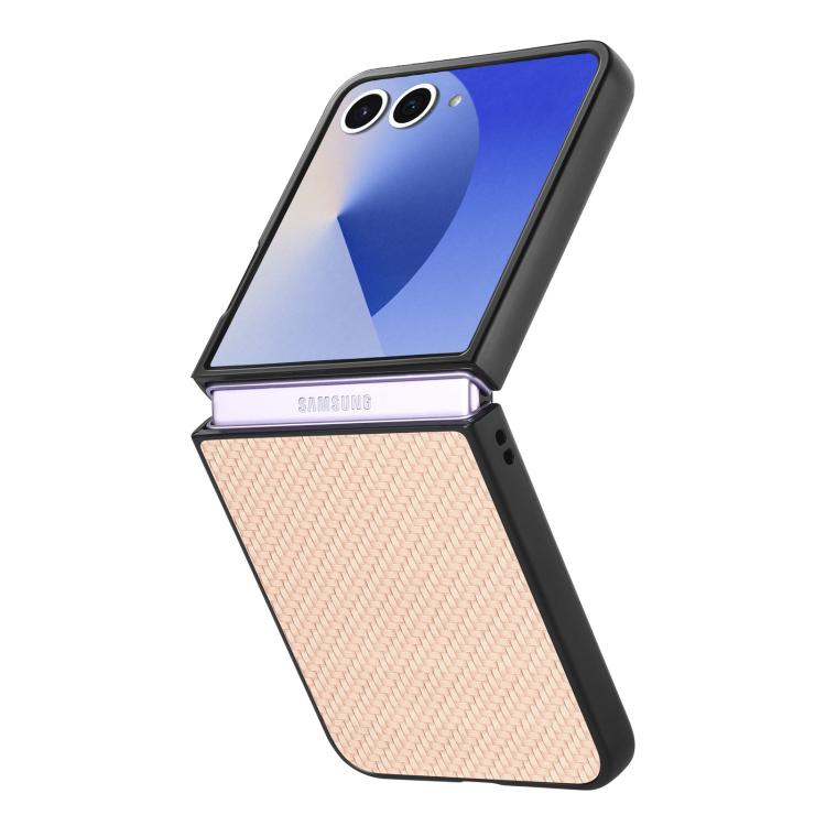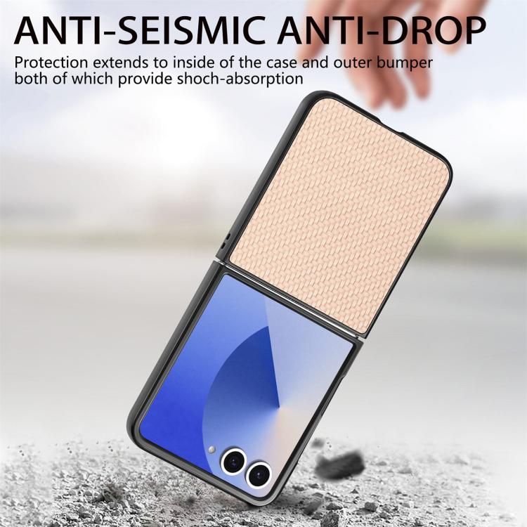 For Samsung Galaxy Z Flip 7 5G Carbon Fiber Texture Leather Back Phone Case(Khaki)