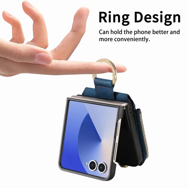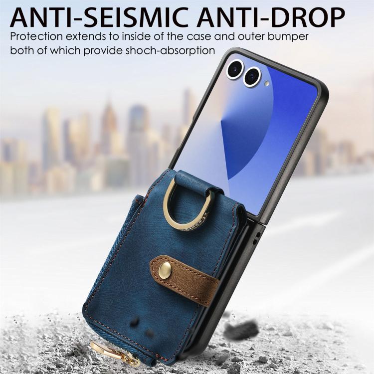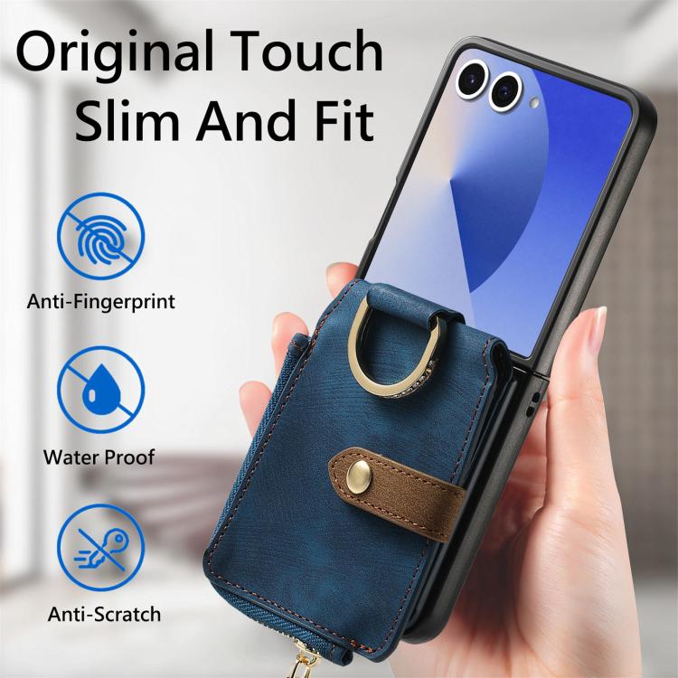 For Samsung Galaxy Z Flip 7 5G Retro Ring Vertical Zipper Wallet Phone Case(Blue)