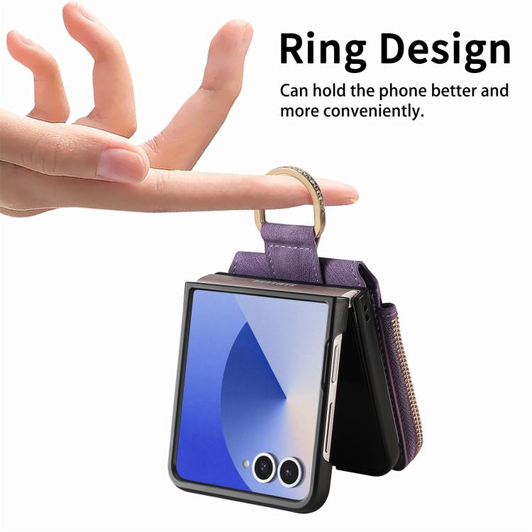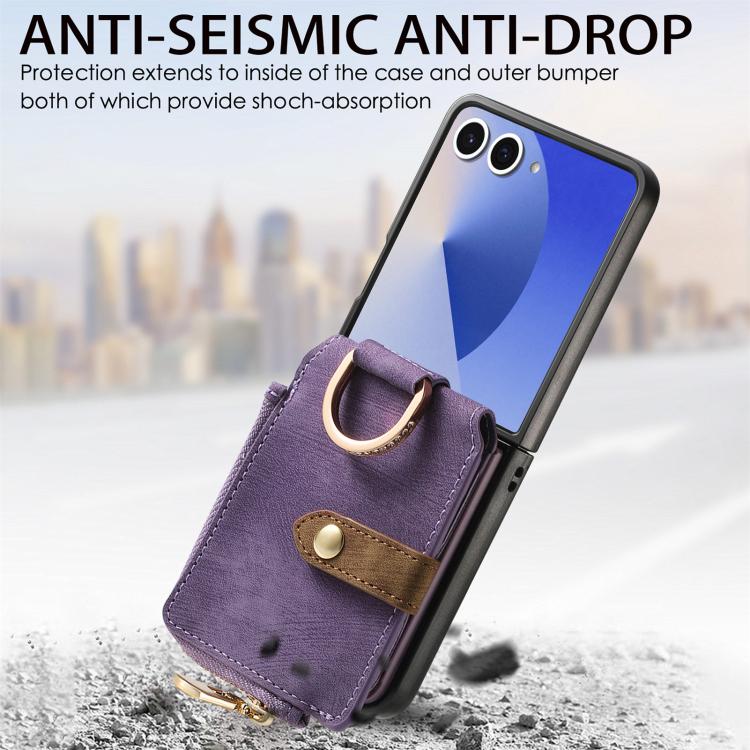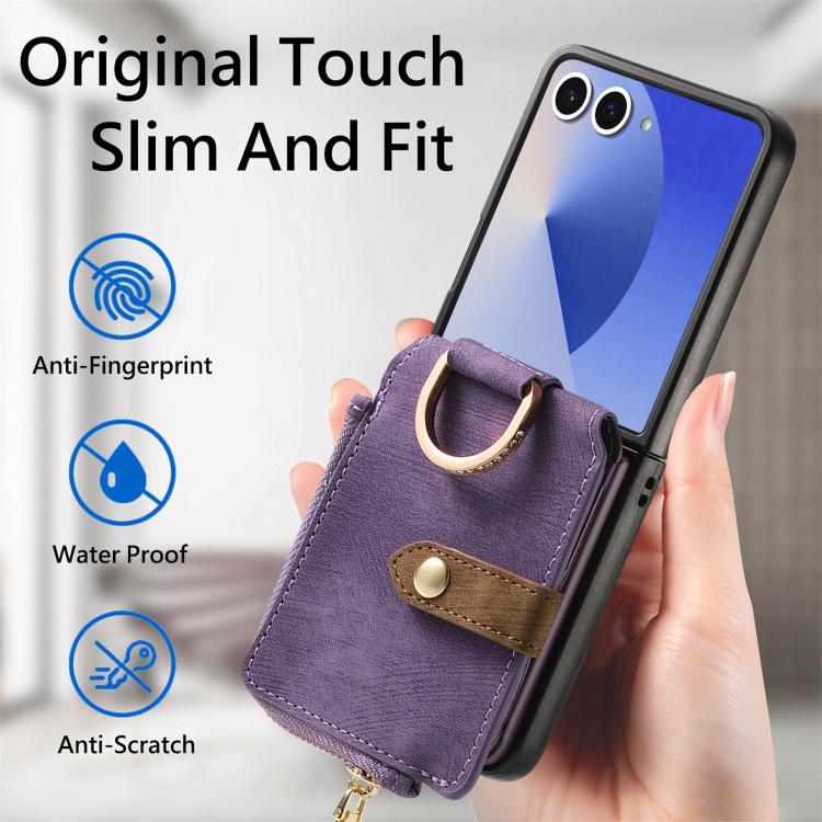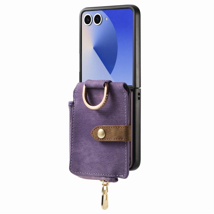 For Samsung Galaxy Z Flip 7 5G Retro Ring Vertical Zipper Wallet Phone Case(Purple)