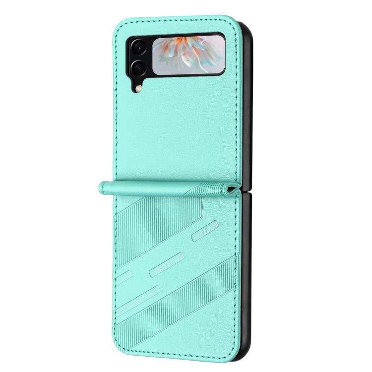 For Samsung Galaxy Z Flip4 5G Embossed Multi-functional Wallet Retro Leather Phone Case(Mint Green)
