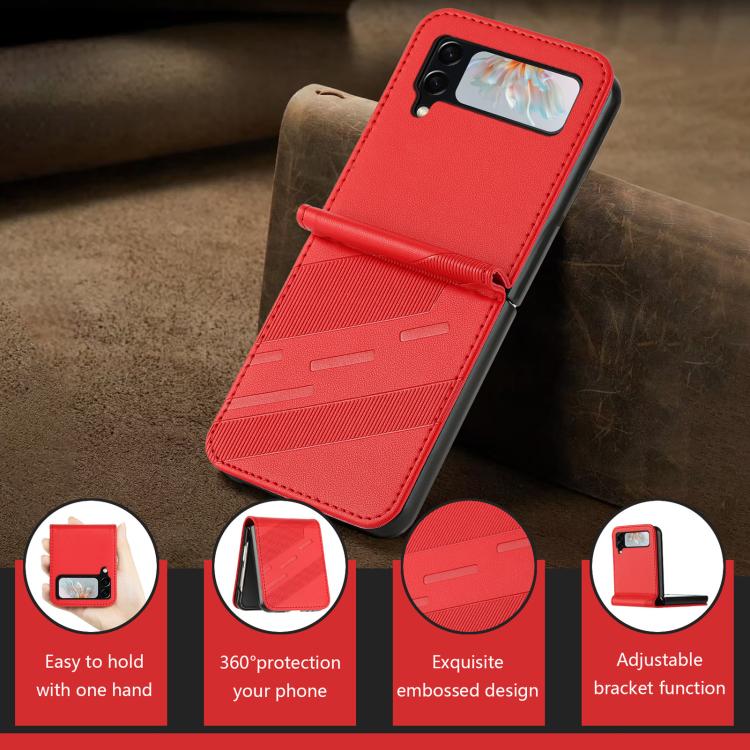 For Samsung Galaxy Z Flip4 5G Embossed Multi-functional Wallet Retro Leather Phone Case(Red)