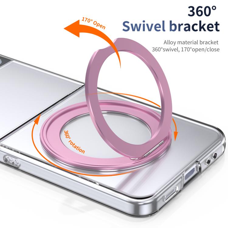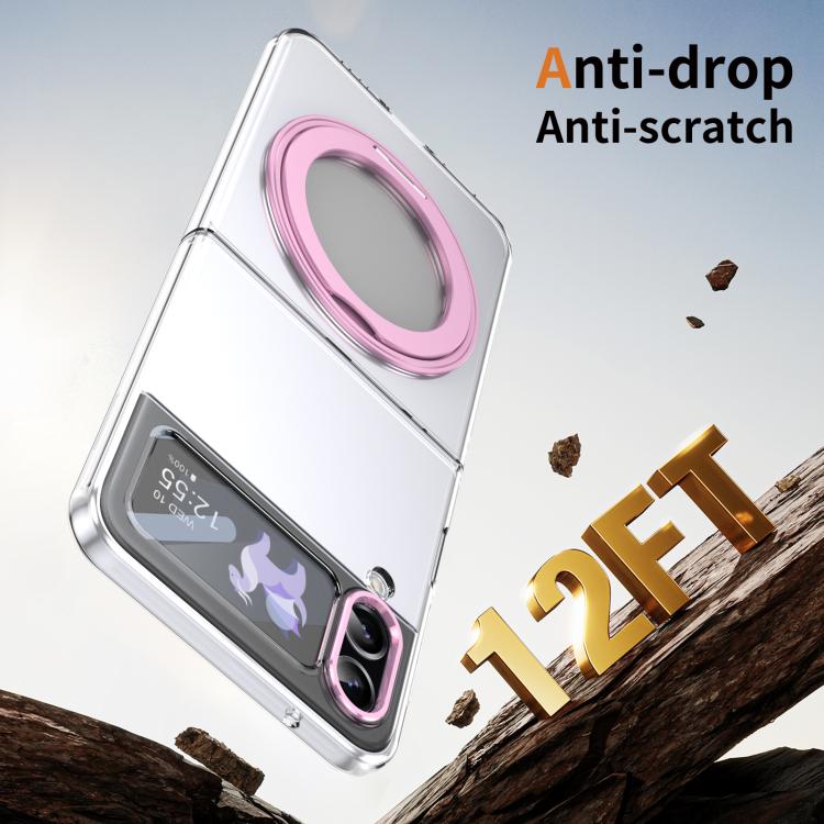 For Samsung Galaxy Z Flip4 5G Integrated Ice-feel High-transparency 360-Degree Rotating Stand MagSafe Folding Phone Case(Pink)