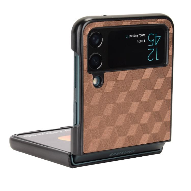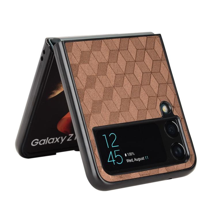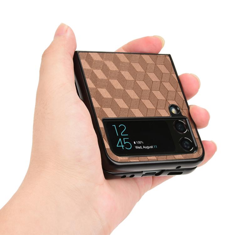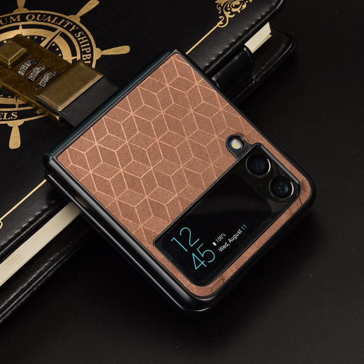 For Samsung Galaxy Z Flip4 Cubic Grid Texture Leather Back Cover Phone Case(Brown)
