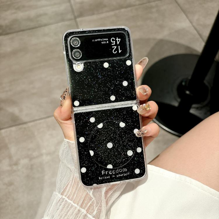 For Samsung Galaxy Z Flip4 Glitter Powder Dots Pattern Phone Case with Holder(Black)