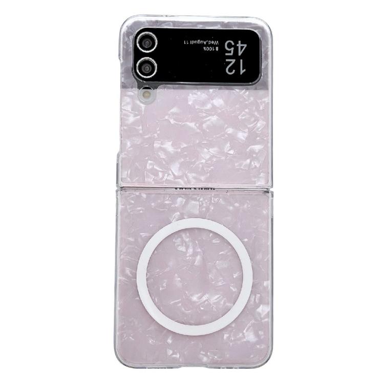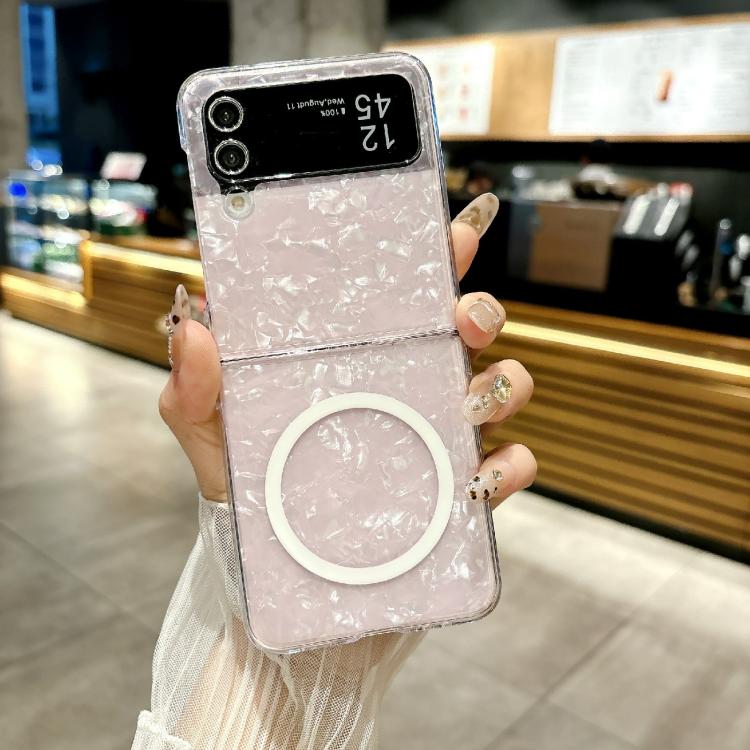 For Samsung Galaxy Z Flip4 Pearlescent Shell Texture MagSafe Phone Case(Pink)