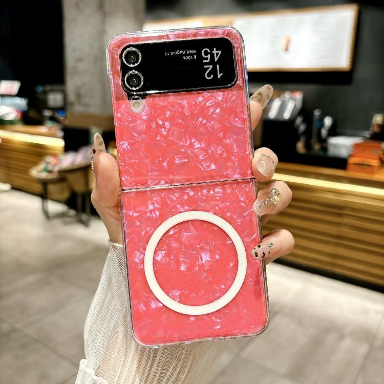 For Samsung Galaxy Z Flip4 Pearlescent Shell Texture MagSafe Phone Case(Red)