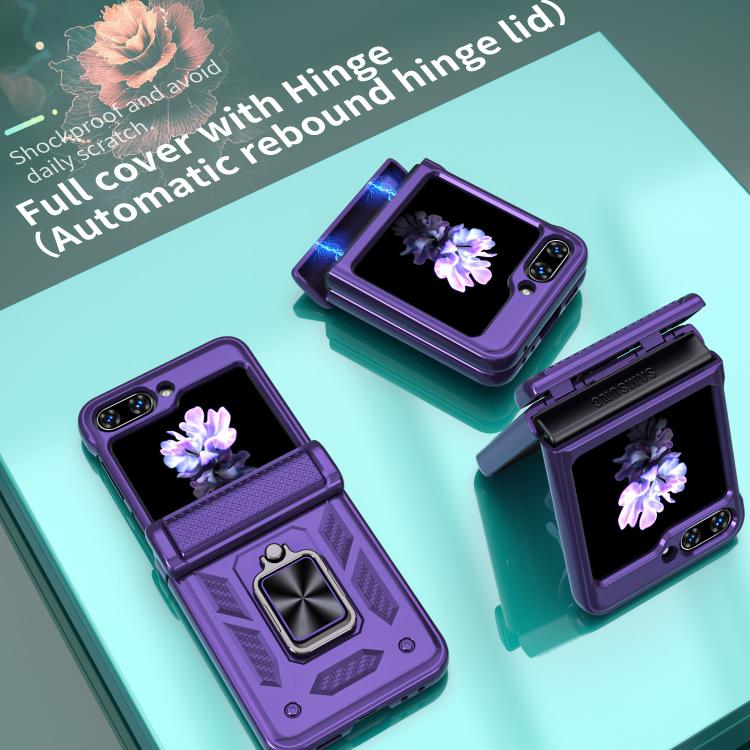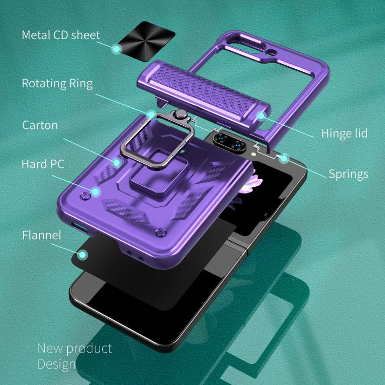 For Samsung Galaxy Z Flip5 5G Kalebol Sliding Window Hinge Phone Case with Ring Stand(Purple)
