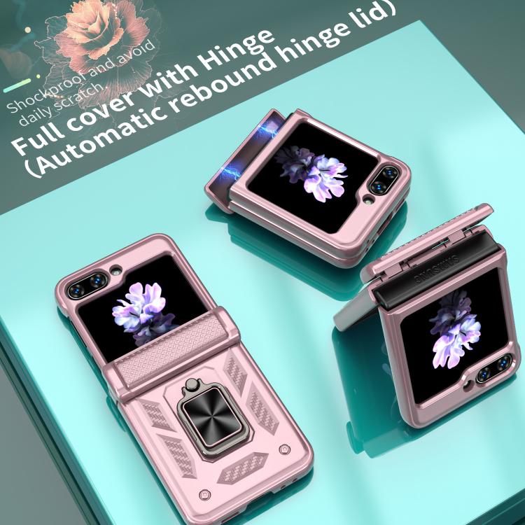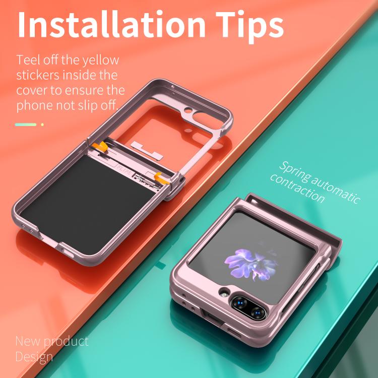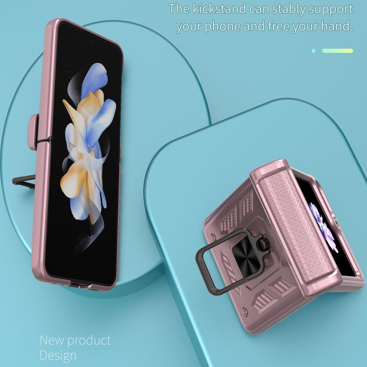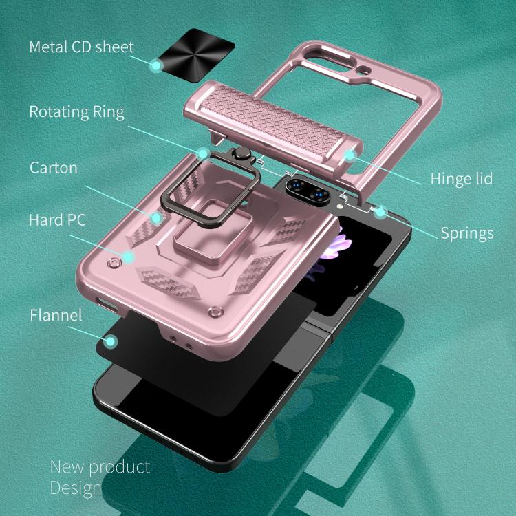 For Samsung Galaxy Z Flip5 5G Kalebol Sliding Window Hinge Phone Case with Ring Stand(Rose Gold)