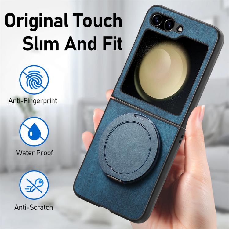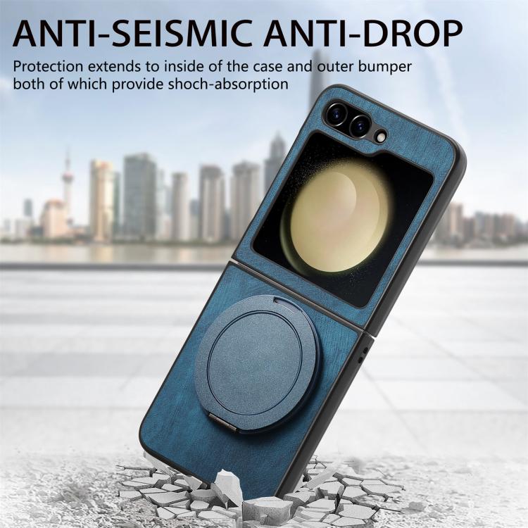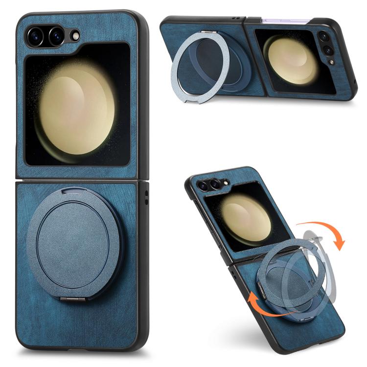 For Samsung Galaxy Z Flip5 5G Retro Leather Rotation Round Holder Phone Case(Blue)