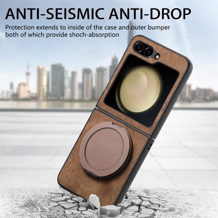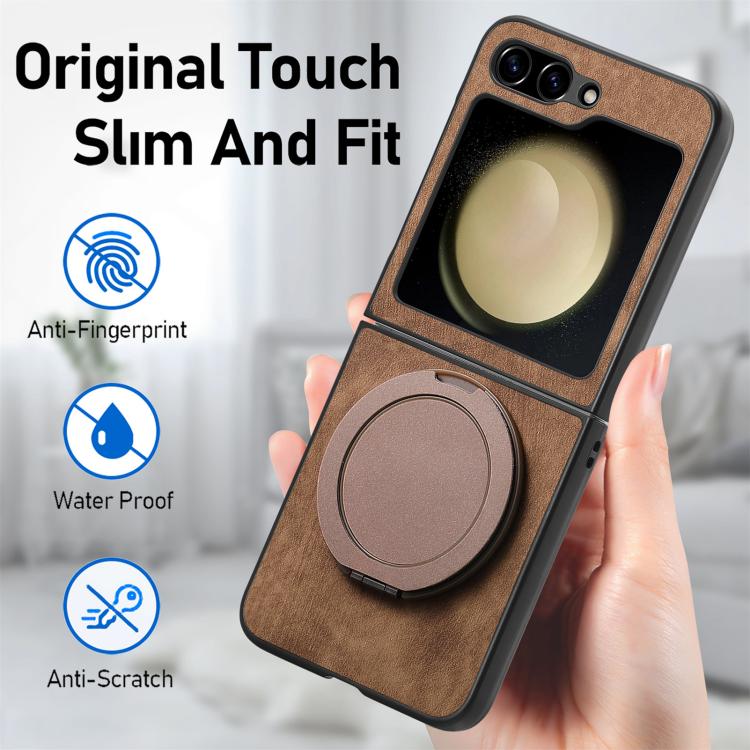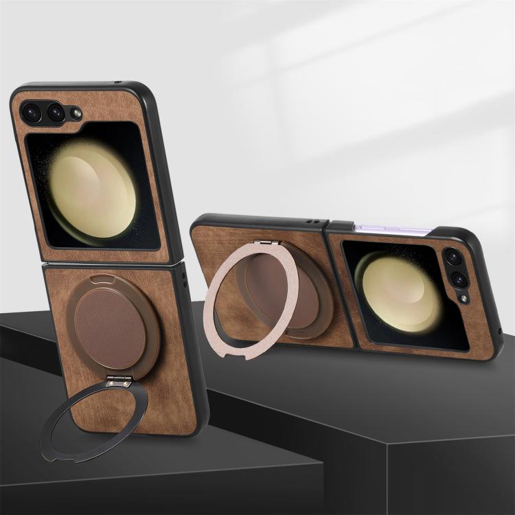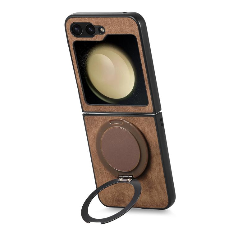 For Samsung Galaxy Z Flip5 5G Retro Leather Rotation Round Holder Phone Case(Brown)