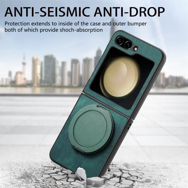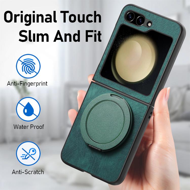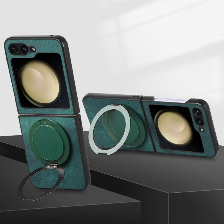 For Samsung Galaxy Z Flip5 5G Retro Leather Rotation Round Holder Phone Case(Green)
