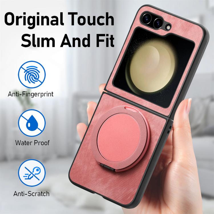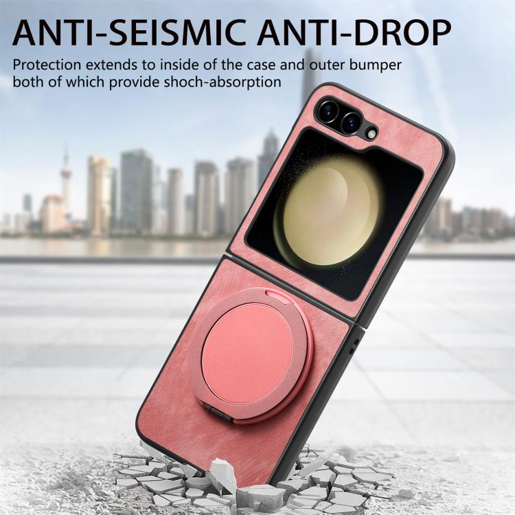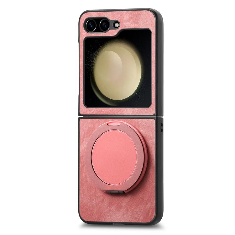 For Samsung Galaxy Z Flip5 5G Retro Leather Rotation Round Holder Phone Case(Pink)
