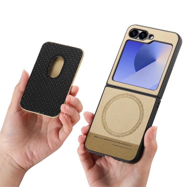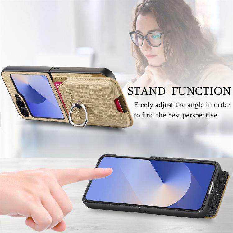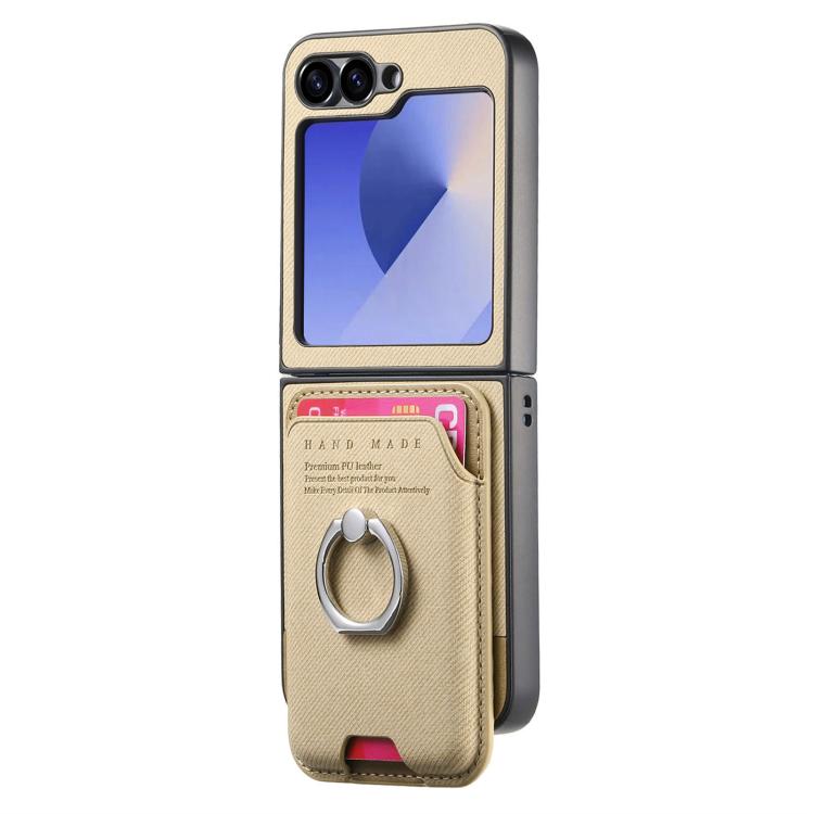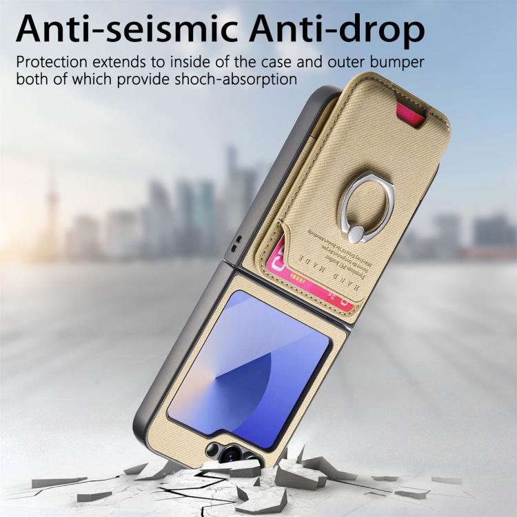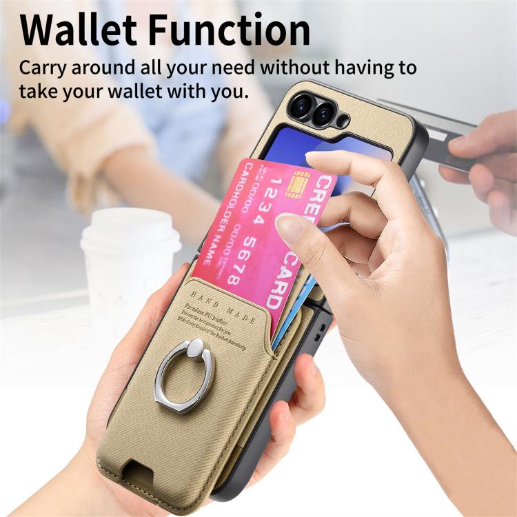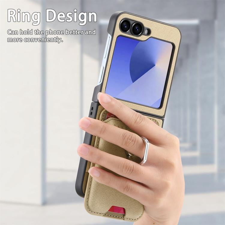 For Samsung Galaxy Z Flip5 5G Twill Fabric Card Bag Ring Magnetic Back Phone Case(Khaki)