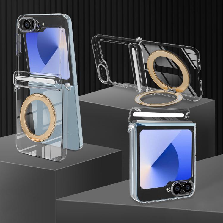 For Samsung Galaxy Z Flip5 /6 /7 FE Aluminum Alloy Holder MagSafe Crystal Hinge Phone Case(Gold)