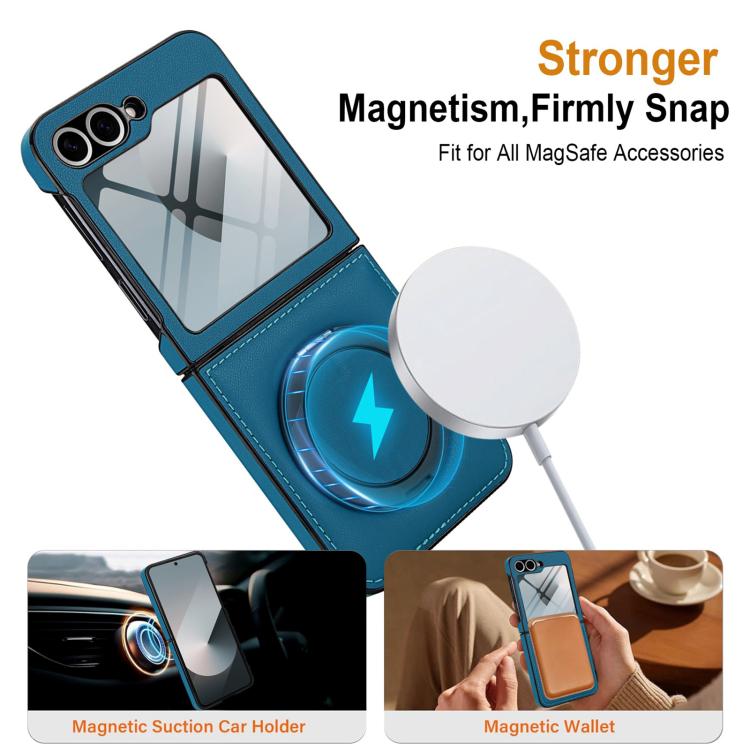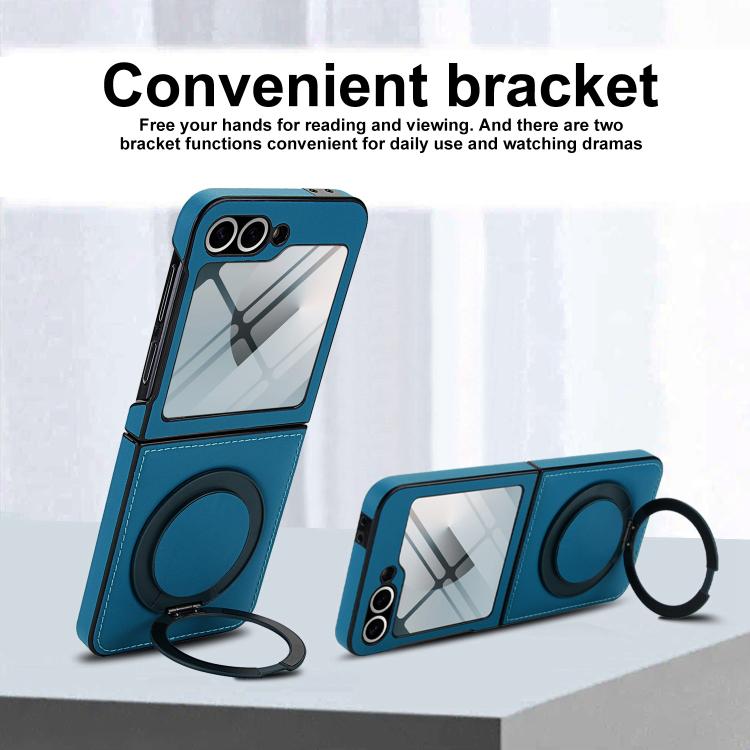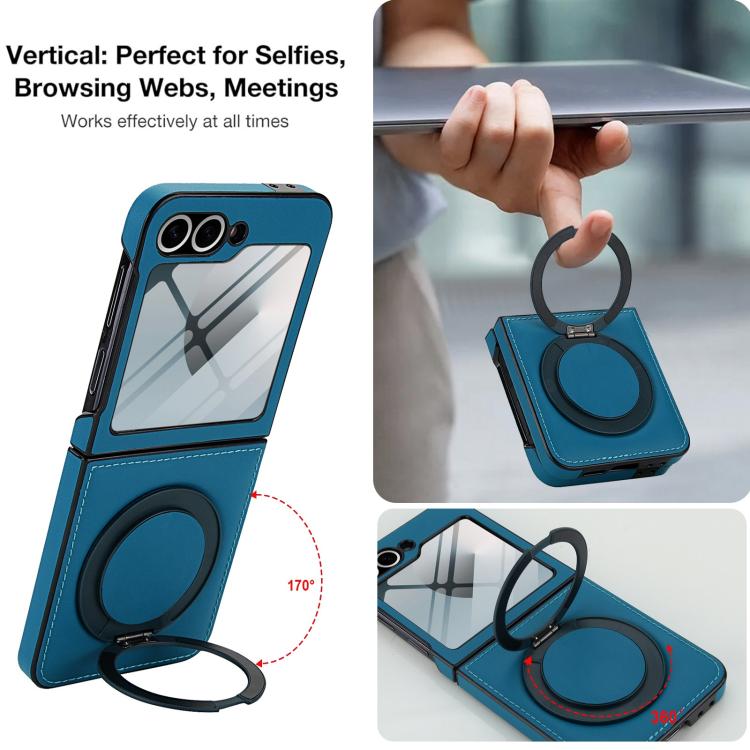 For Samsung Galaxy Z Flip5 Folding Rotation Holder MagSafe Film Integrated Leather Phone Case(Blue)