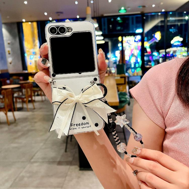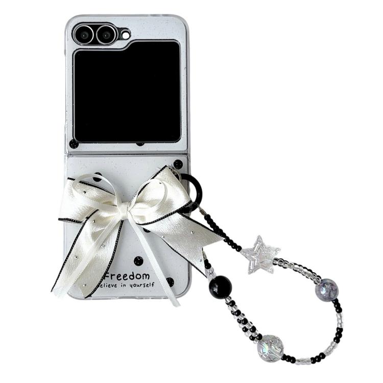 For Samsung Galaxy Z Flip5 Glitter Powder Dots Pattern Phone Case with Bow Bracelet(White)