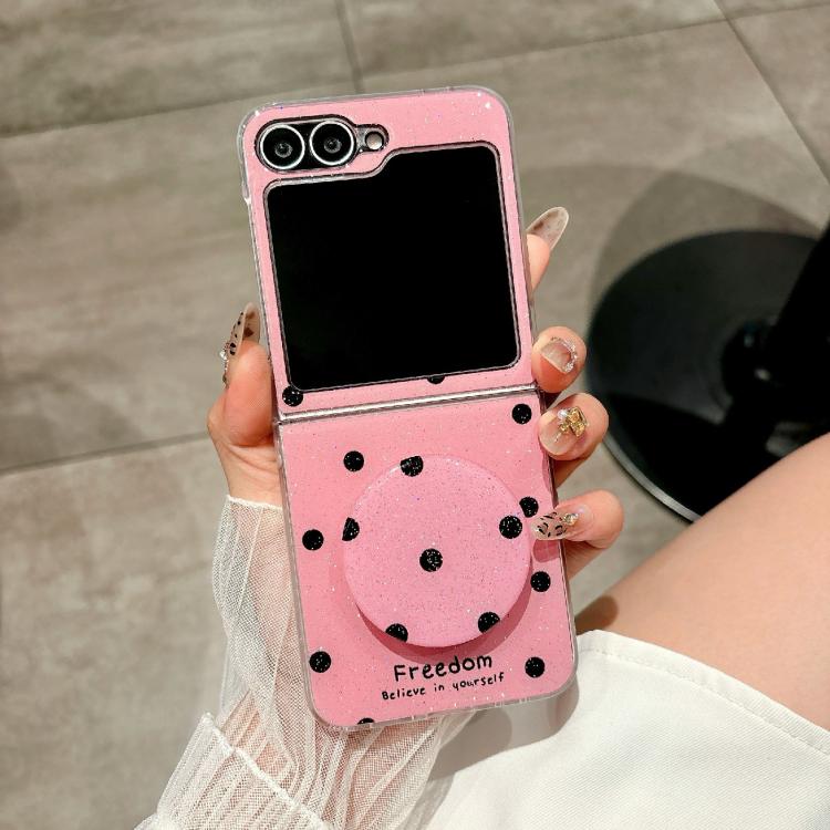 For Samsung Galaxy Z Flip5 Glitter Powder Dots Pattern Phone Case with Holder(Rose Red)