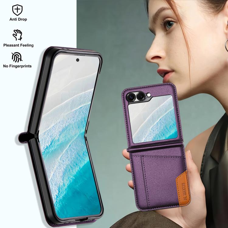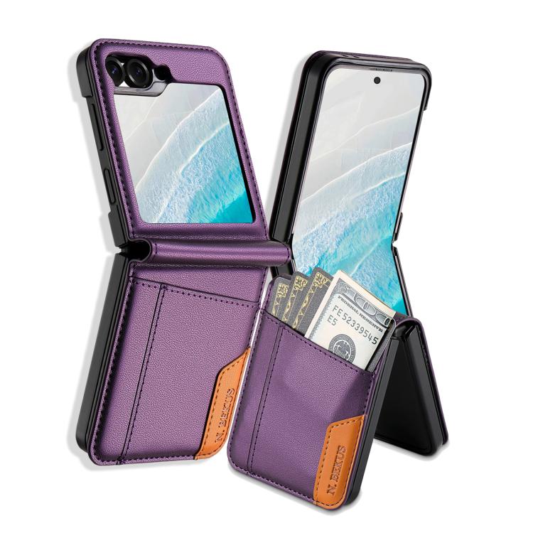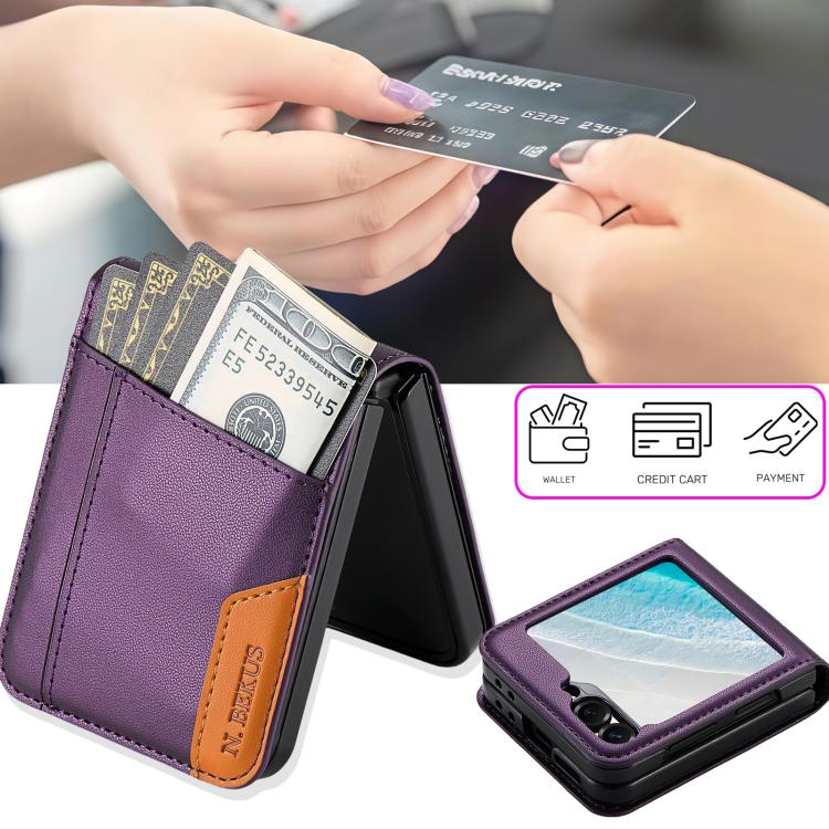 For Samsung Galaxy Z Flip5 N.BEKUS P3 RFID Stitching Magnetic Flip Leather Phone Case(Purple)