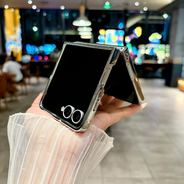 For Samsung Galaxy Z Flip5 Plating Frame Glitter Paper Nameplate Full Coverage Phone Case(Gold)