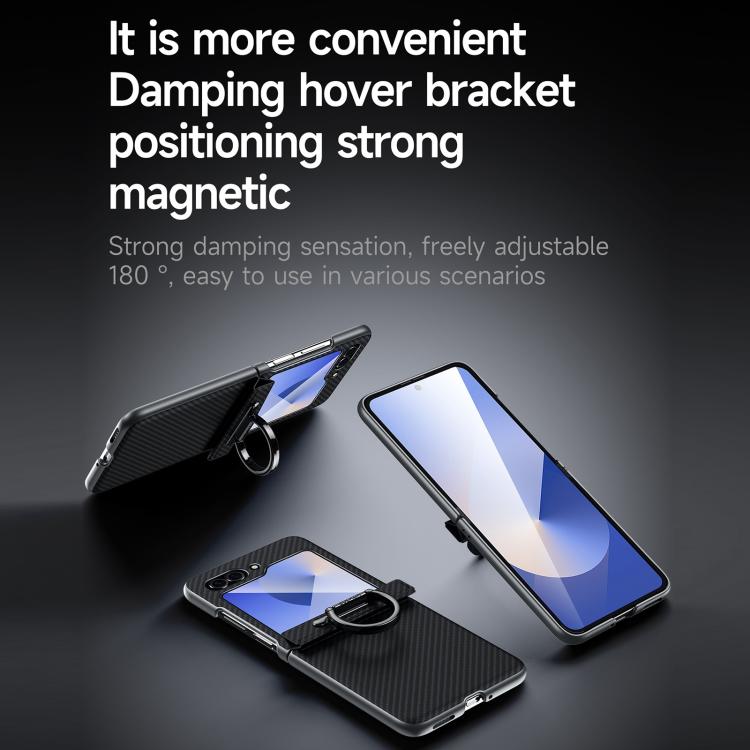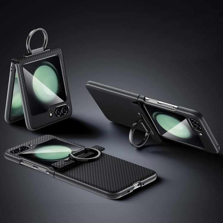 For Samsung Galaxy Z Flip5 SULADA 600D Kevlar Texture PC Shockproof Phone Case with Rng Holder(Black)