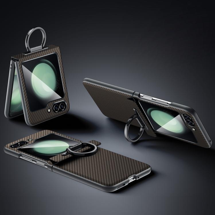 For Samsung Galaxy Z Flip5 SULADA 600D Kevlar Texture PC Shockproof Phone Case with Rng Holder(Brown)