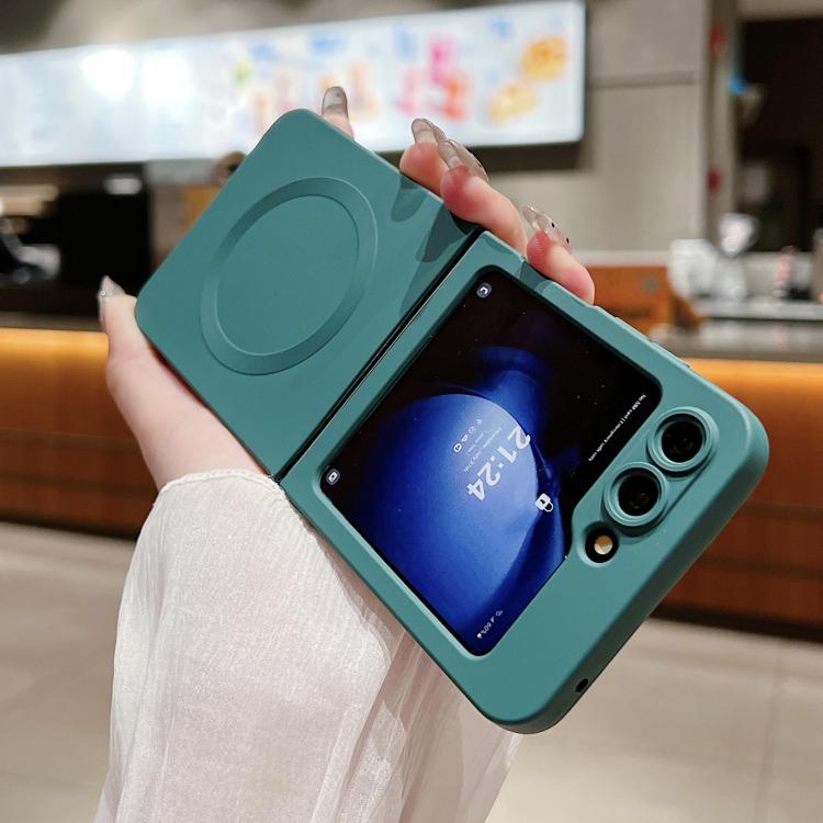 For Samsung Galaxy Z Flip6 5G Solid Color Liquid Silicone MagSafe Magnetic Phone Case(Dark Green)