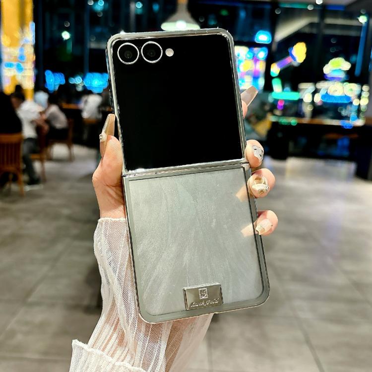 For Samsung Galaxy Z Flip6/7 FE Plating Frame Glitter Paper Nameplate Full Coverage Phone Case(Glacier Silver)