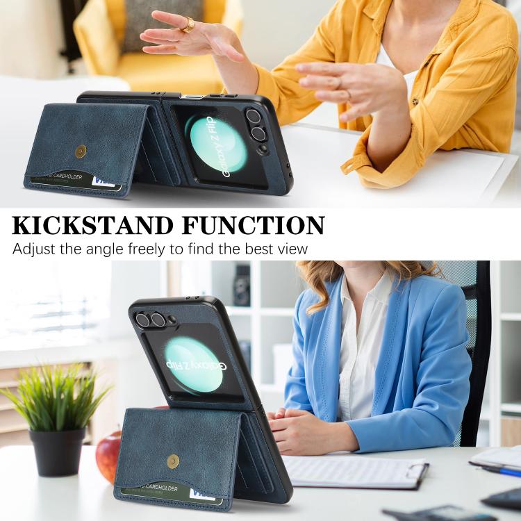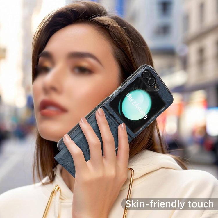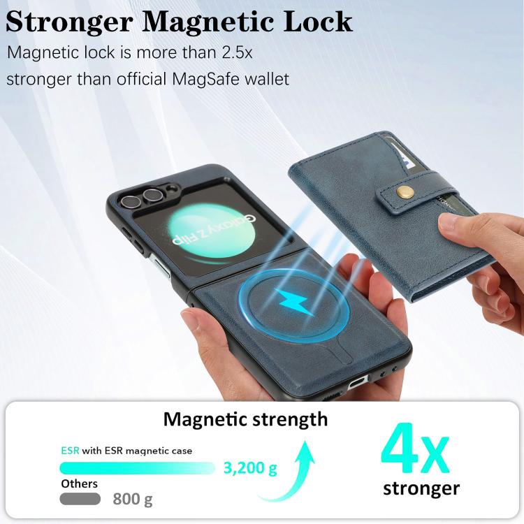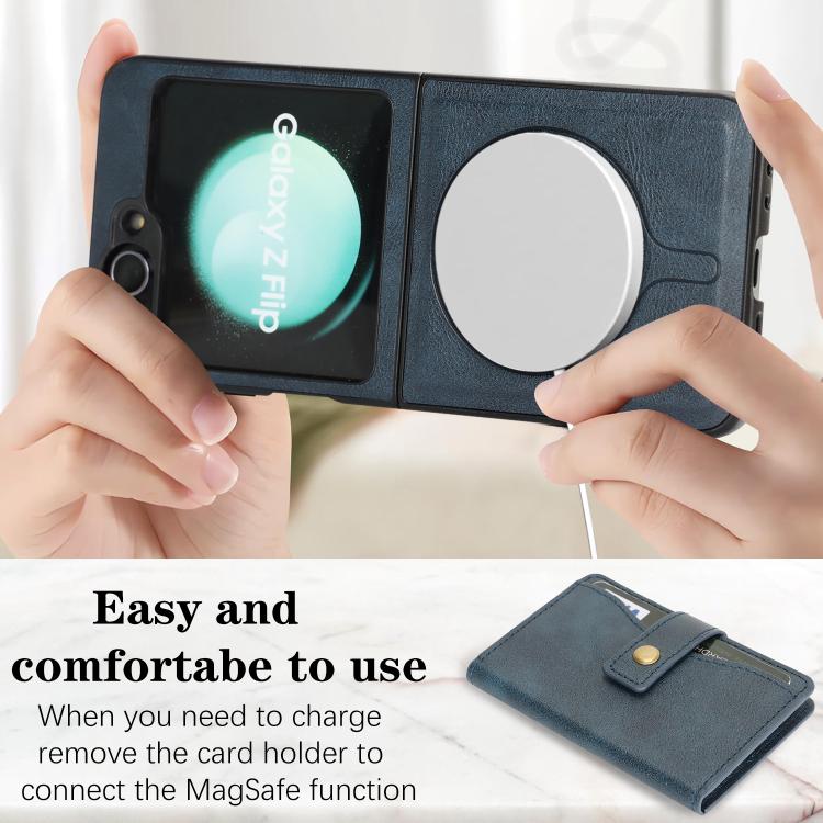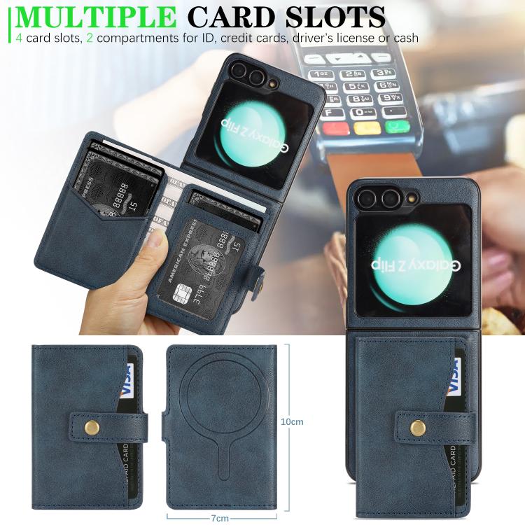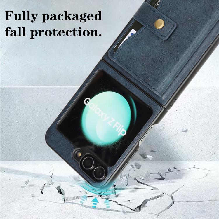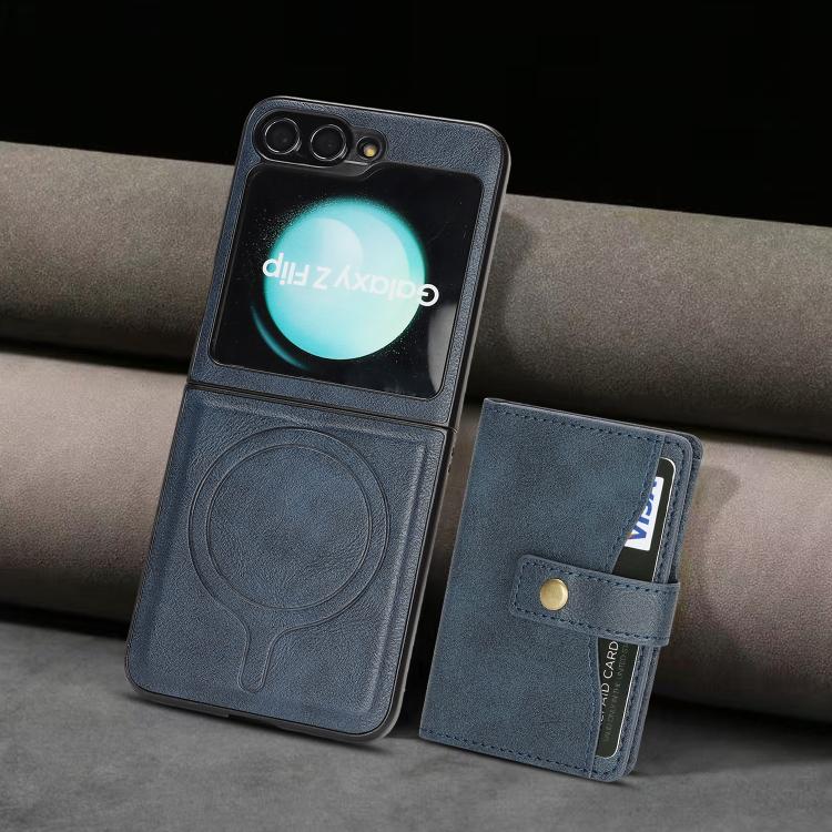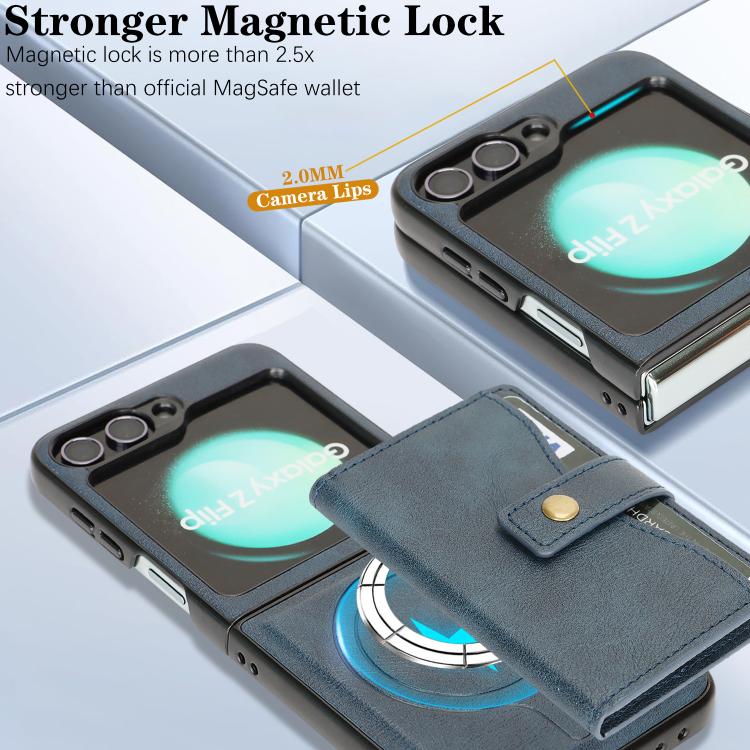 For Samsung Galaxy Z Flip6 / Flip7 FE Kalebol Magnetic Button Card Bag MagSafe Ring Leather Phone Case(Blue)