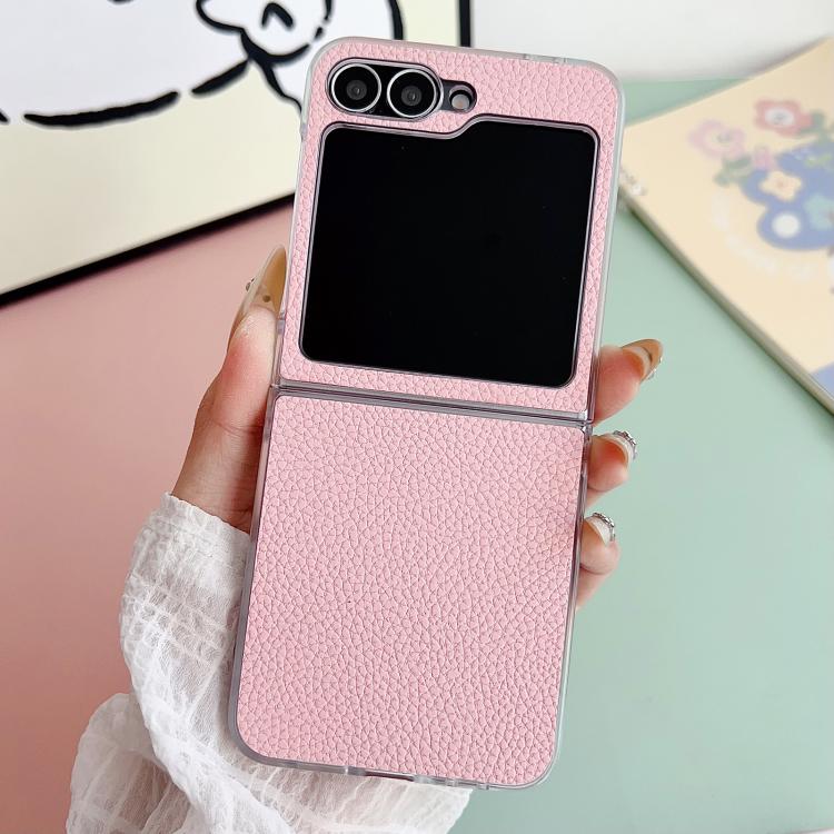 For Samsung Galaxy Z Flip6 / Flip7 FE Litchi Texture Leather Clear Jelly PC Phone Case(Pink)