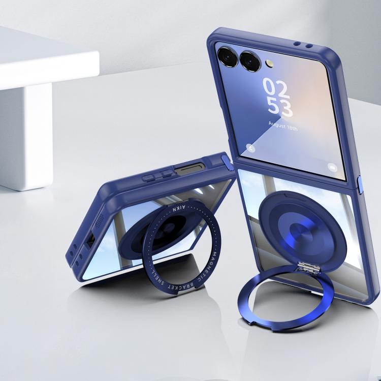 For Samsung Galaxy Z Flip7 5G 360 Holder MagSafe Acrylic Hybrid TPU Phone Case(Blue)