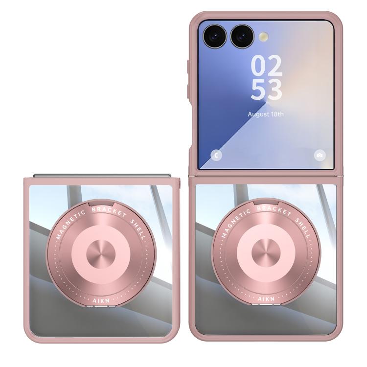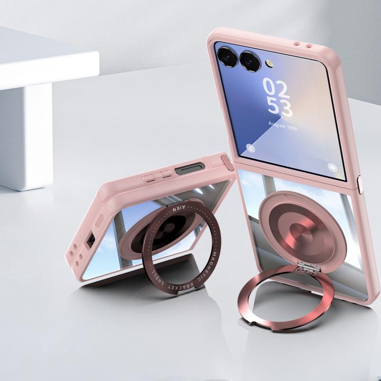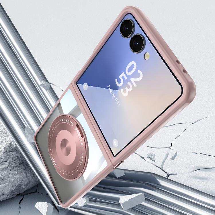 For Samsung Galaxy Z Flip7 5G 360 Holder MagSafe Acrylic Hybrid TPU Phone Case(Pink)