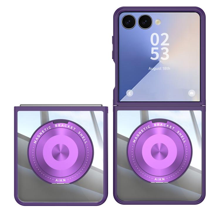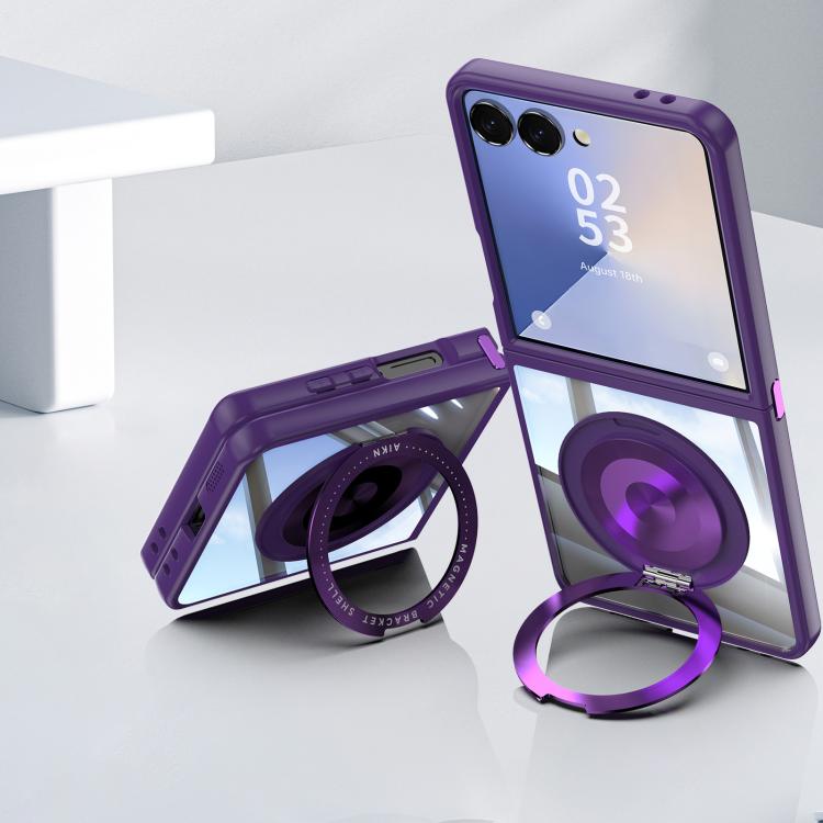 For Samsung Galaxy Z Flip7 5G 360 Holder MagSafe Acrylic Hybrid TPU Phone Case(Purple)