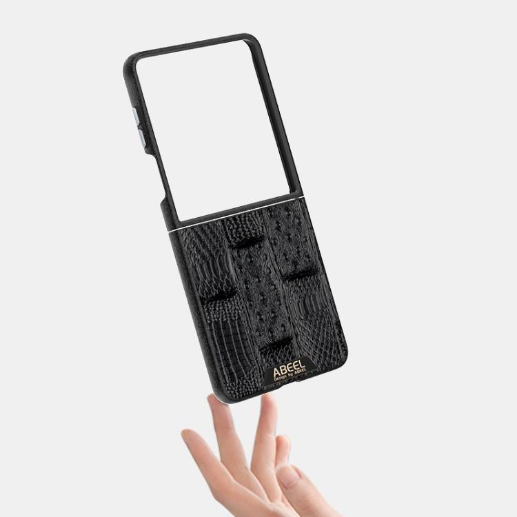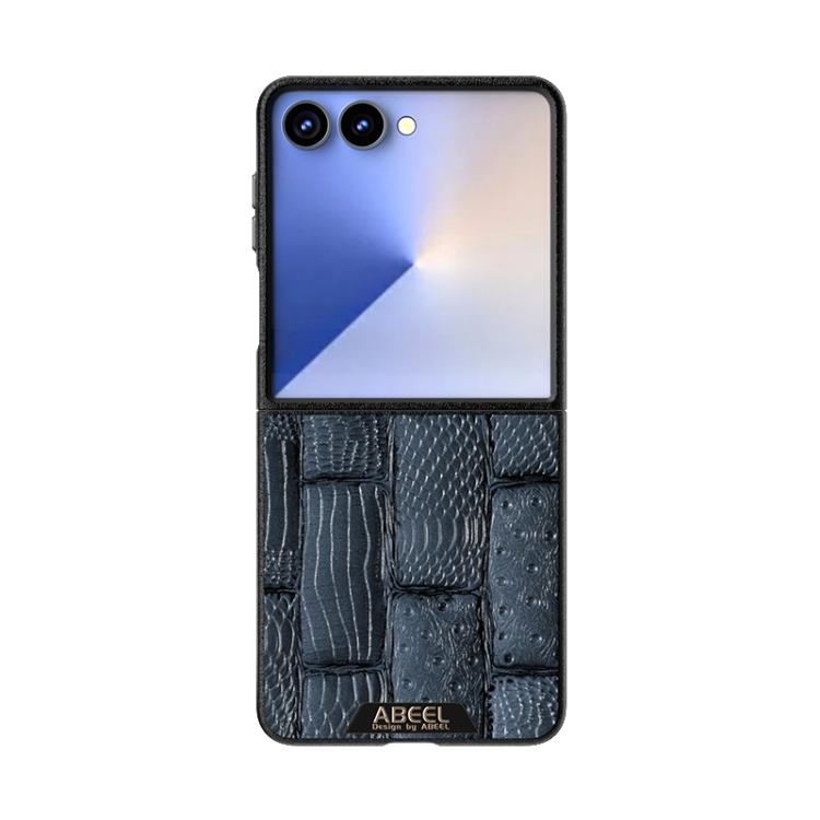 For Samsung Galaxy Z Flip7 5G ABEEL Beast Pattern 6D Micro-Embossed MagSafe Genuine Leather Phone Case(Blue)