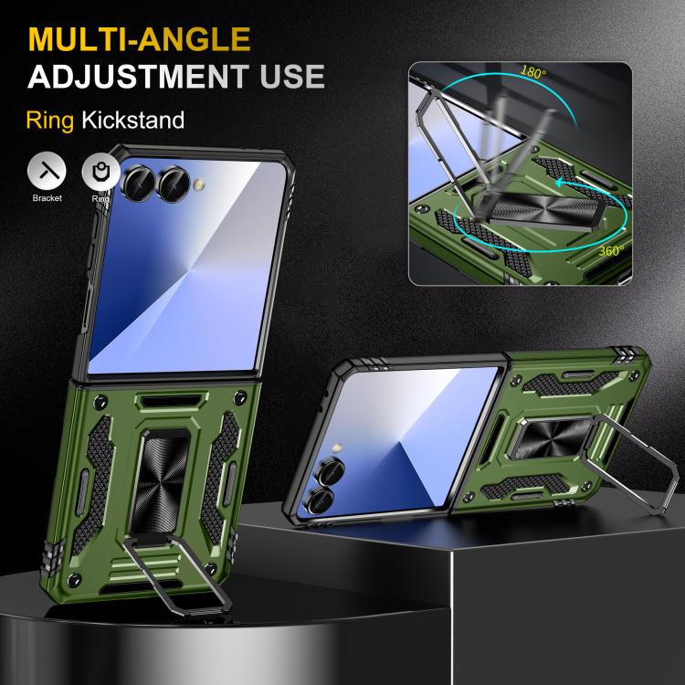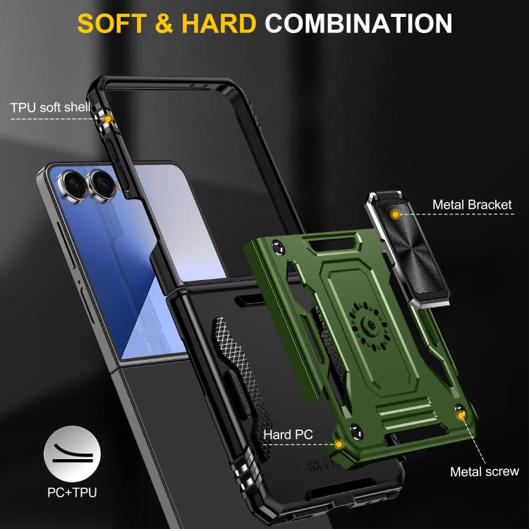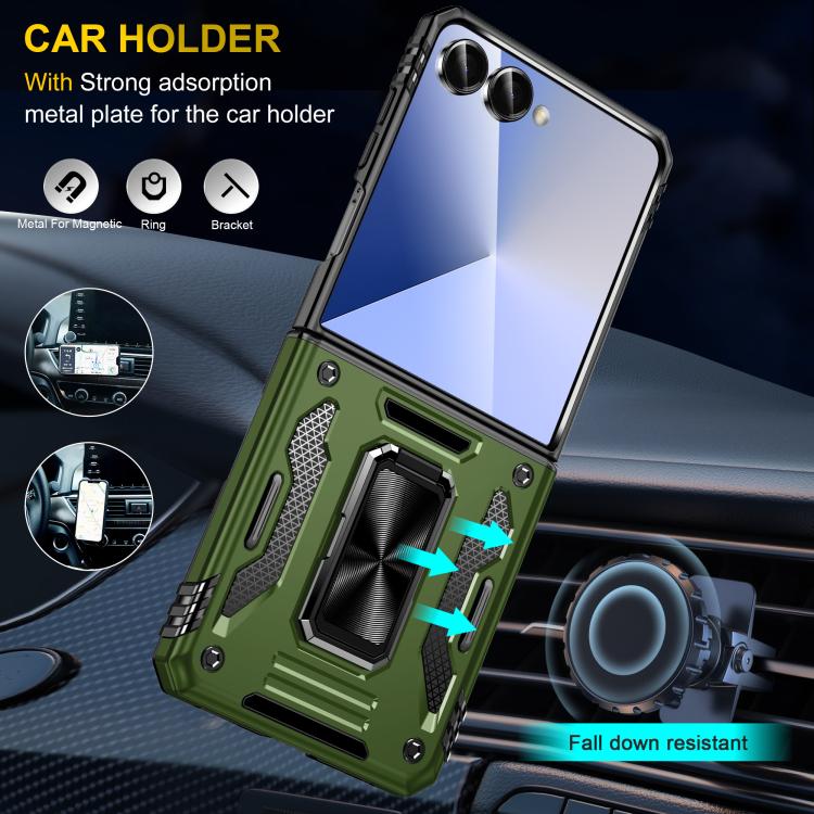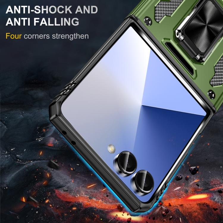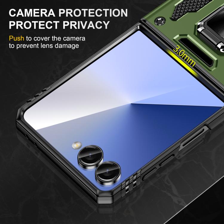 For Samsung Galaxy Z Flip7 5G Armor PC + TPU Camera Shield Phone Case(Olive Green)