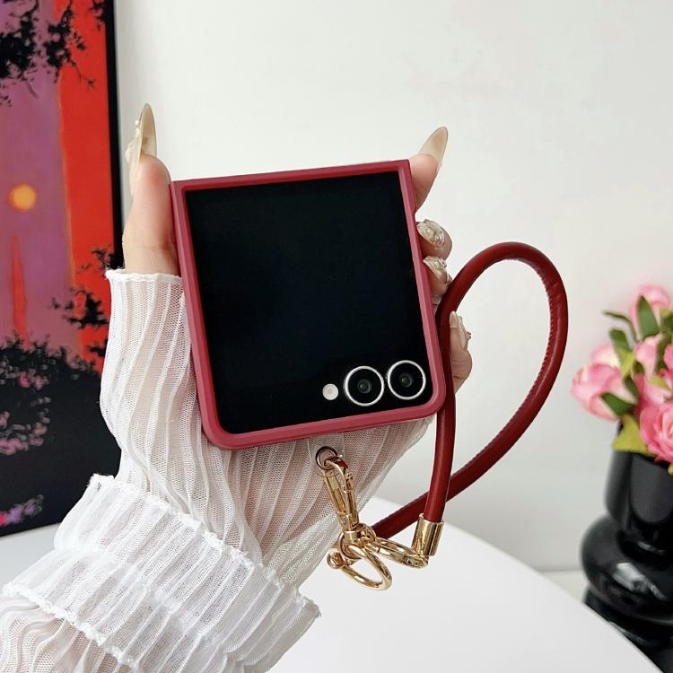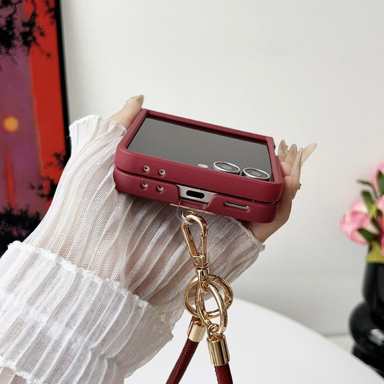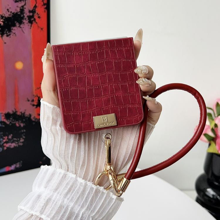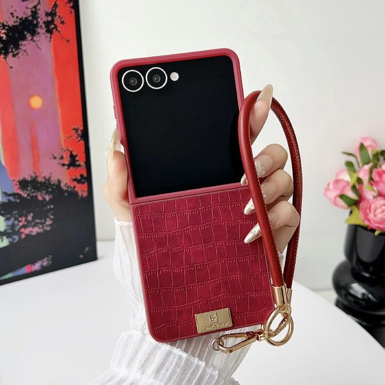 For Samsung Galaxy Z Flip7 5G Crocodile Texture TPU Phone Case With Strap(Red)