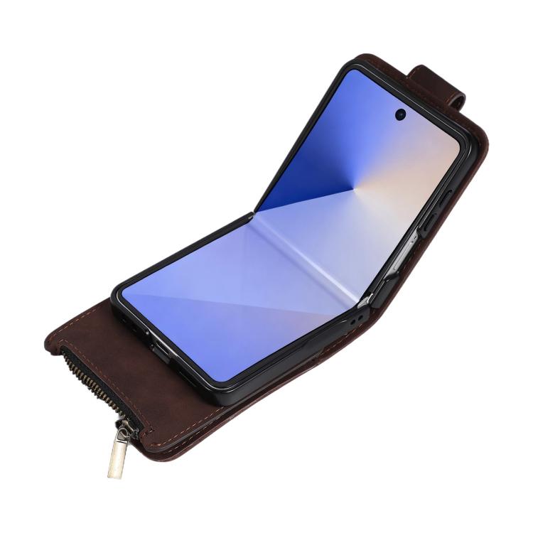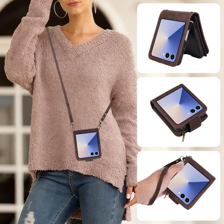 For Samsung Galaxy Z Flip7 5G Crossbody Multi-card Slot Wallet Zipper Leather Phone Case(Coffee)