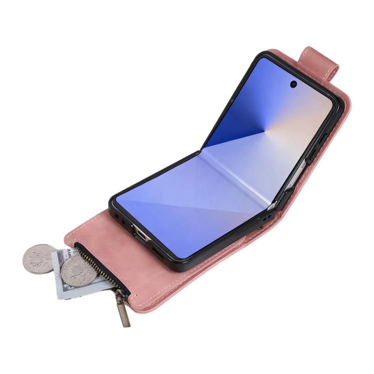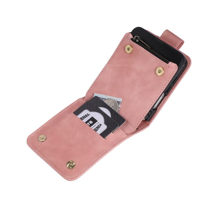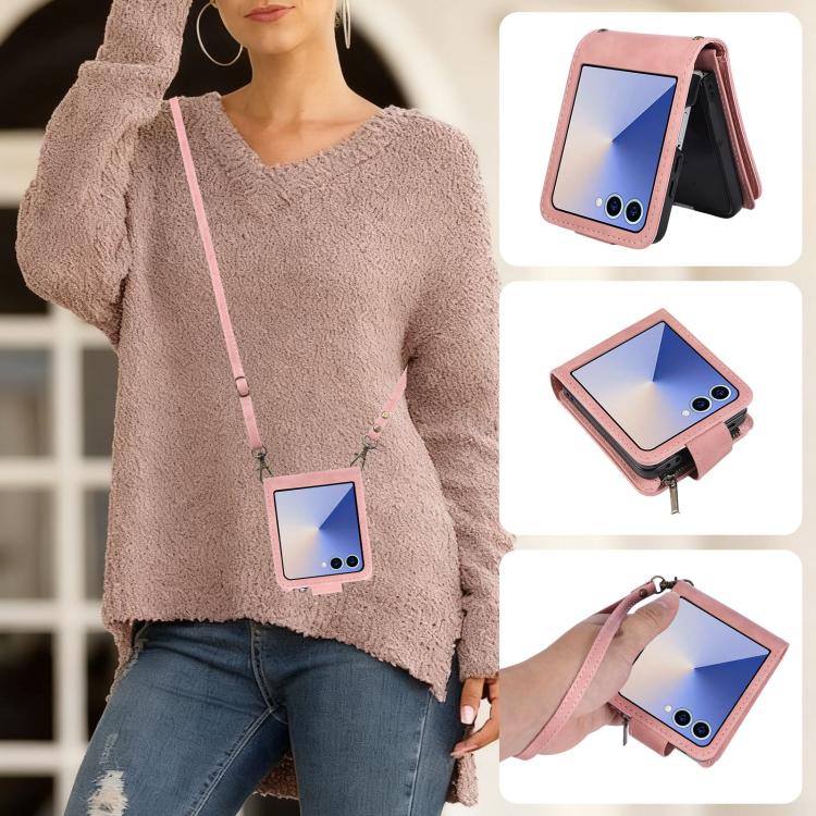For Samsung Galaxy Z Flip7 5G Crossbody Multi-card Slot Wallet Zipper Leather Phone Case(Pink)